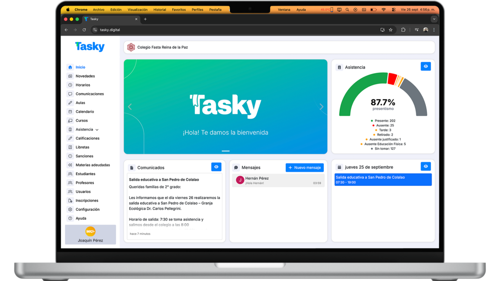 Tasky se ajusta a las necesidades y particularidades de cada institución. Se adapta a las legislaciones provinciales y a la forma de trabajo de cada colegio, garantizando una herramienta funcional y alineada a su realidad.